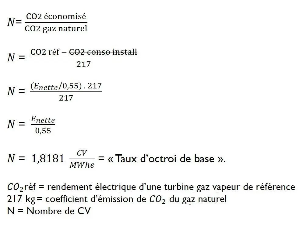 Sur une année, si cette installation produit 4800 kWh, alors elle recevra 9,4 CV.