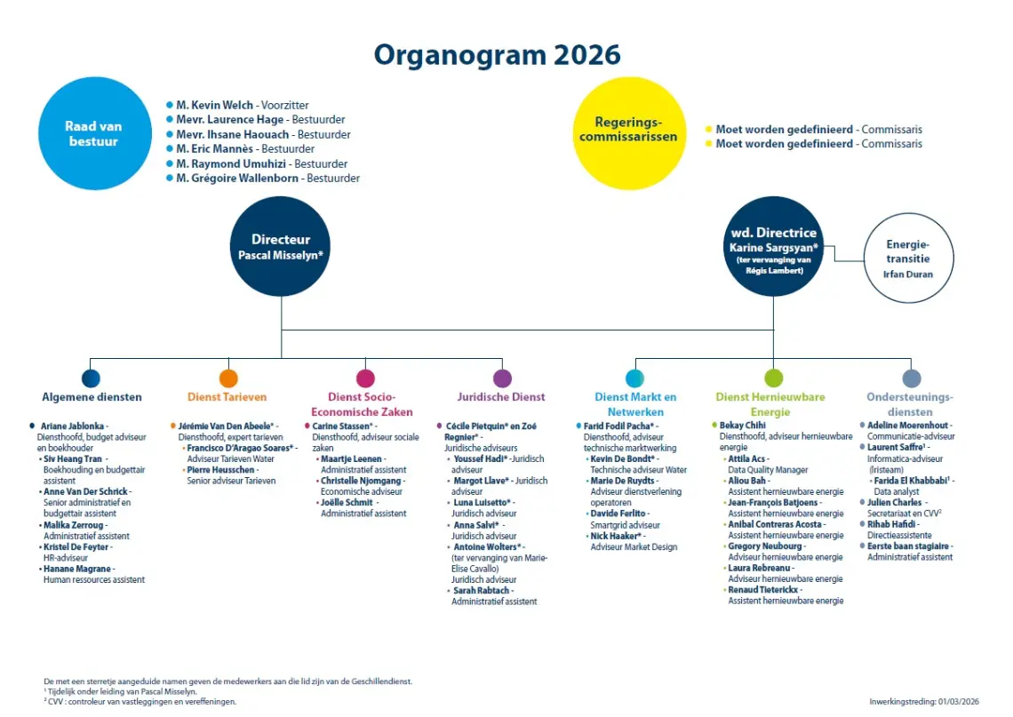 BRUGEL werkt onafhankelijk van de Brusselse Hoofdstedelijke Regering en bestaat uit :