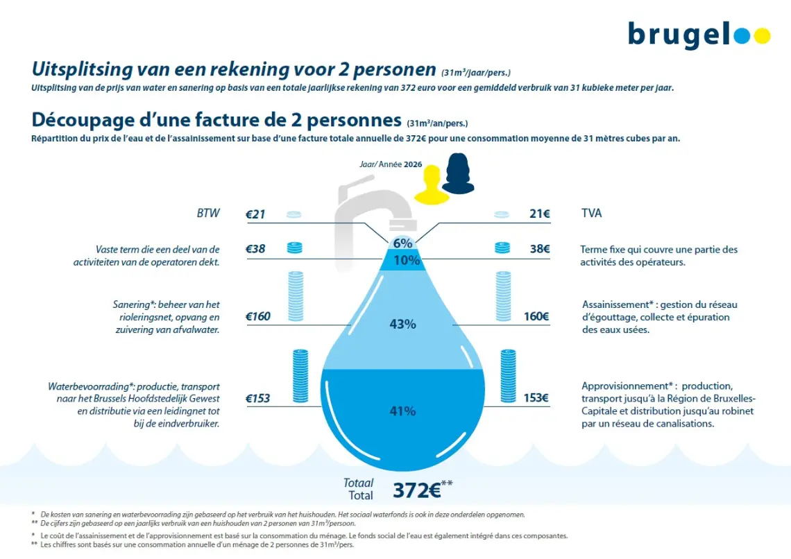 Cette décision permet d’une part de s’assurer que le service fourni aux ménages bruxellois reste exemplaire et d’autre part de financer l’ensemble des coûts supportés par les opérateurs de l’eau ainsi que leurs investissements validés par le gouvernement.